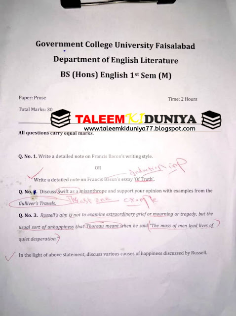 👉 GCUF PRIVATE COLLEGE PAST PAPERS BS ENGLISH