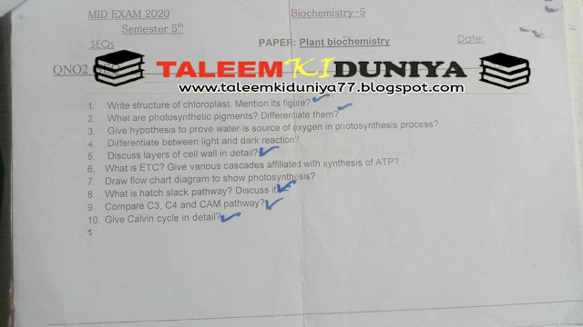 | PLANT BIOCHEMISTRY 2020 FINAL PAPER 5TH SEMESTER BS BIOCHEMISTRY GCUF |